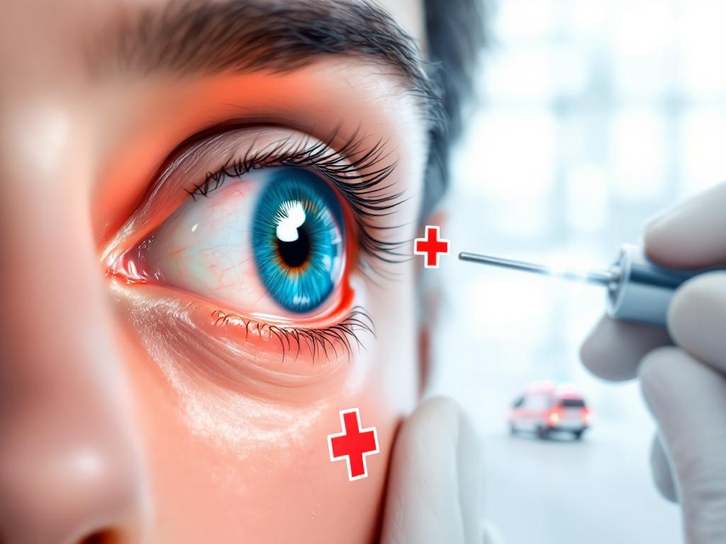 En cas de baisse de vision brutale, traumatisme oculaire, brûlure chimique ou thermique, douleur oculaire intense, œil rouge, hypertension oculaire, vision double (diplopie) ou apparition soudaine d’un œil qui ressort (exophtalmie).